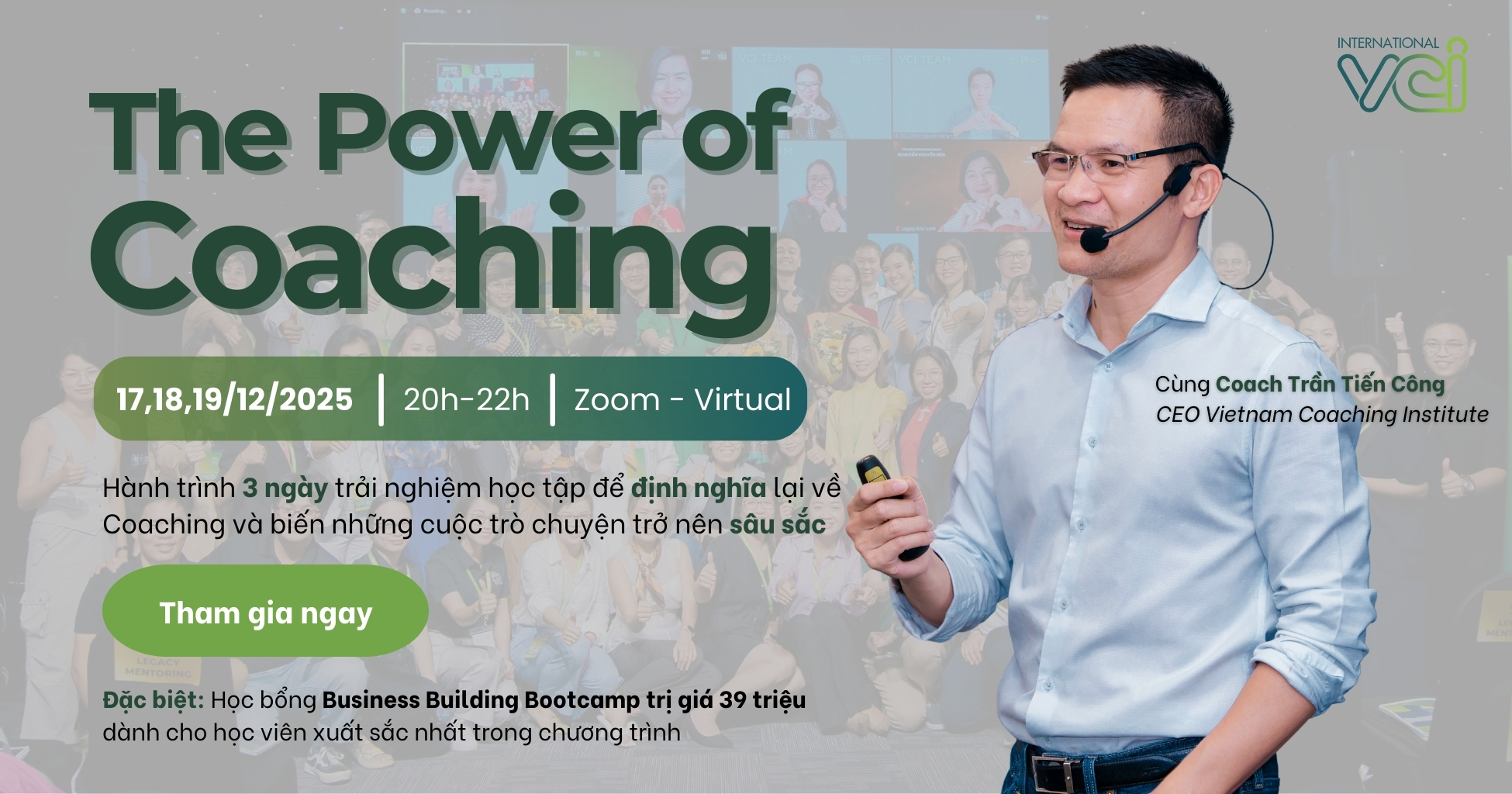 Chương trình sẽ là ngọn hải đăng dành cho những người Coach mới và cả những Coach đã có kinh nghiệm trong nghề. Với cùng một mong muốn được nâng cấp chuyên môn, khám phá các mô hình khai vấn hiệu quả, thu thập thông tin từ ngành và tham gia vào cộng đồng chuyên gia khai vấn.