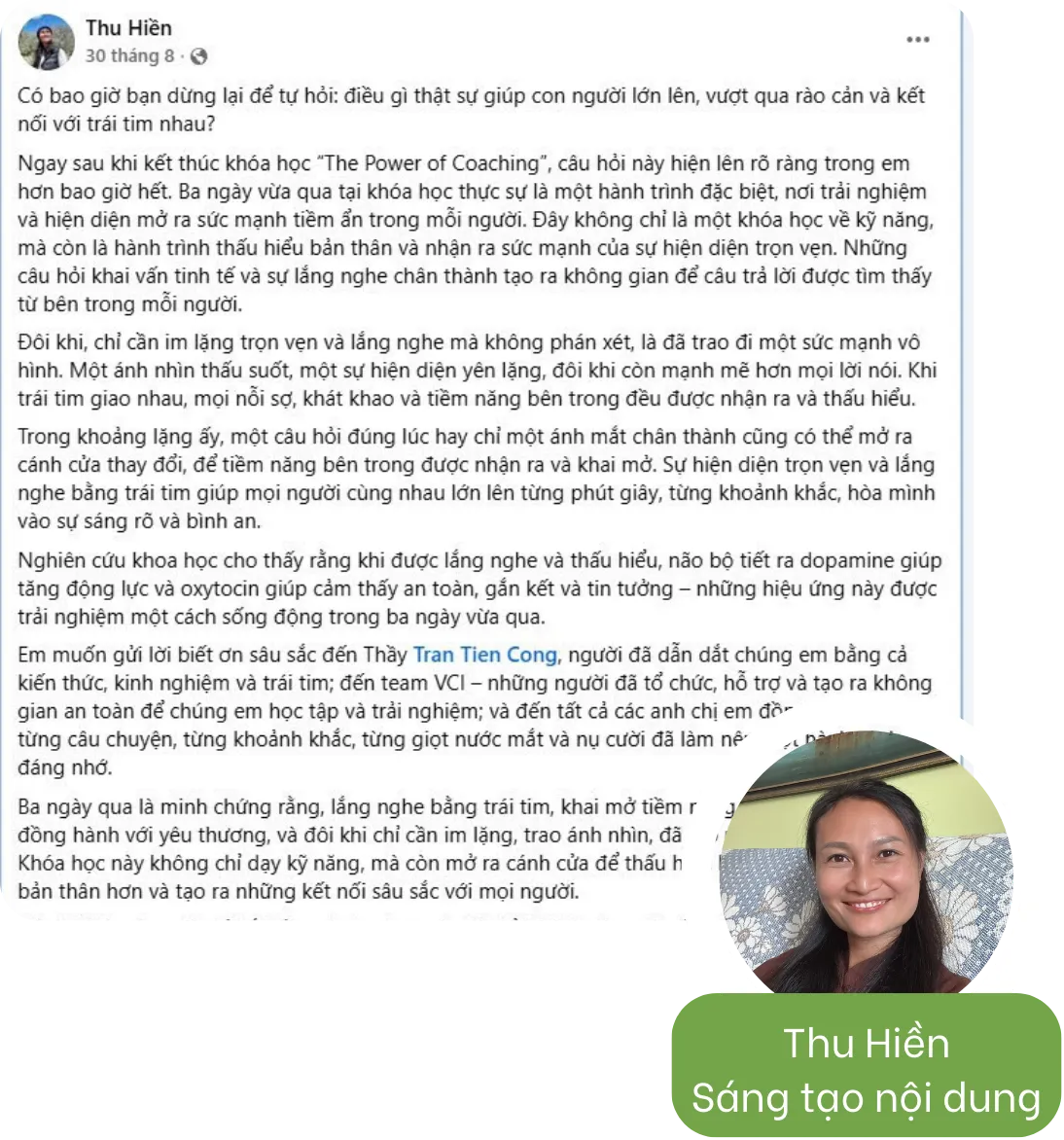 Coaching không cần bạn nói hay hay “giải quyết giỏi”. Chỉ cần bạn học cách hiện diện, hỏi đúng và lắng nghe sâu để người đối diện tự nhìn rõ vấn đề và giải pháp của họ.