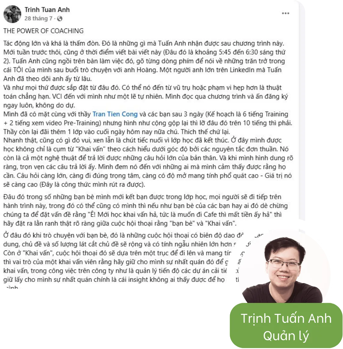 Rất thực tế. Coaching không thay bạn làm công việc, nhưng giúp bạn giao tiếp hiệu quả hơn, đặt câu hỏi rõ ràng hơn và giúp người khác ra quyết định nhanh hơn trong bất kỳ vai trò nào.