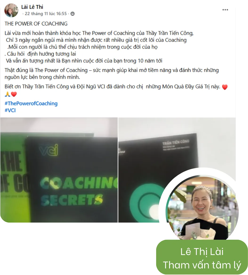 Bạn sẽ có đủ nền tảng để bắt đầu những buổi trò chuyện theo phong cách coaching. Không “thành chuyên gia” ngay, nhưng đủ để bạn ứng dụng vào công việc, đội nhóm hoặc các mối quan hệ cá nhân.